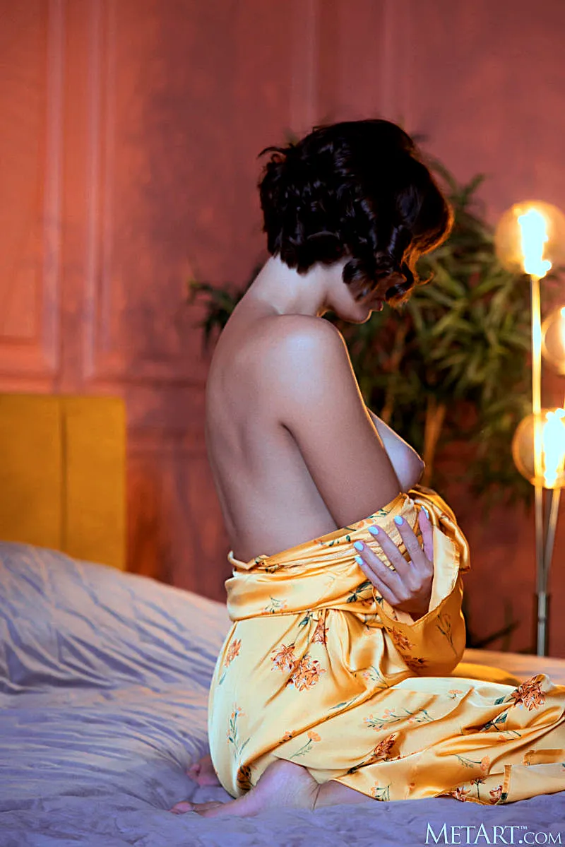 Η Alice Kelly βγάζει την μεταξωτή ρόμπα της και χωρίς εσώρουχα ολόγυμνη, ξαπλώνει στο κρεβάτι και παίζει με το ροζ γατάκι της.