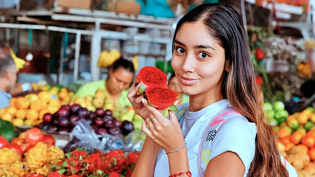 Η εξωτική Λατίνα ψωνίζει φρούτα και τα πάει σπίτι για να μας δείξει το δικό της!