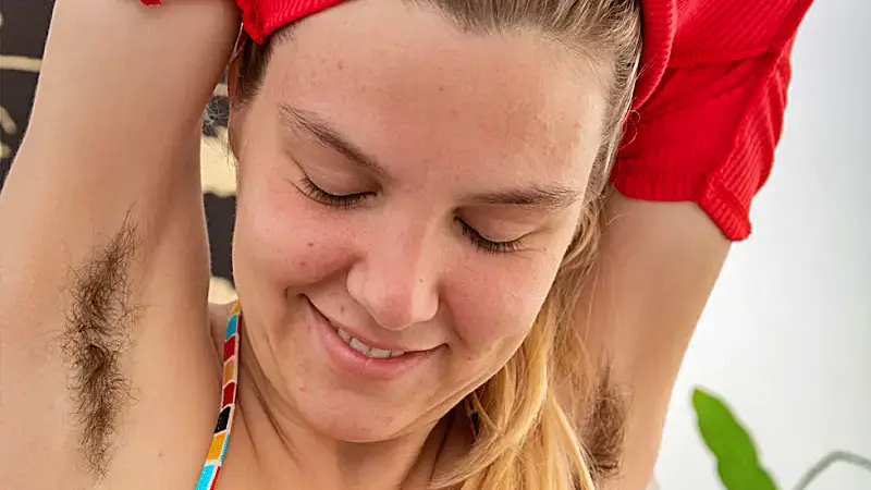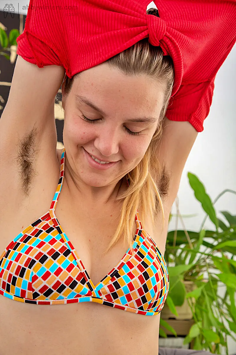Η χαριτωμένη ξανθιά 18άρα φητήτρια Mischa μας δείχνει ντεκολτέ και τριχωτές μασχάλες ενώ κατεβάζει με χάρη το στρινγκάκι της